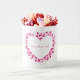 A classic white coffee mug with heart frame and "Love is all you need" quote