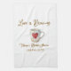 Love is Brewing white coffee mug heart bridal show Geschirrtuch