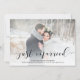 Cette élégante faire-part de mariage présente votre photo personnelle avec un romantique script noir superposé qui dit "juste marié", et un regard en marbre sur le dos.