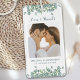 Ajoutez la touche finale à votre mariage avec cette photo personnalisée de mariage de verdure botanique eucalyptus porte - clé. Parfait comme les faveurs de mariage à tous vos invités. Customisez ces faveurs de mariage avec votre photo mariage préférée, photo nouvellement mariée, et personnalisez avec le nom et la date. Consultez notre collection de mariages pour les faveurs de mariage, les cadeaux de mariée et les cadeaux de mariée. DROIT D'AUTEUR © 2022 Judy Burrows, Black Dog Art - Tous droits réservés. Love & Merci Eucalyptus Greenery Photo Mariage Porte - clé