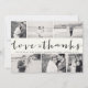 Express votre gratitude avec cet élégant design mariage "Love & Thanks". Doté d'une superposition de script moderne et d'une mise en page de collage de 6 photos, ce design vous permet de présenter vos moments mariages préférés. Personnalisez facilement avec vos noms, votre date de mariage et un message sincère pour créer un souvenir inoubliable pour vos invités. Modern Love and Thanks Classic Calligraphy Script Et 6 Photo Collage Mariage Carte de remerciements. Ce modèle de carte de remerciements moderne et élégant, noir et blanc multi-5 photo mariage, présente un script de police de calligraphie blanc élégant dans un design typographique classique sur une bande simple. Vous pouvez facilement le personnaliser avec vos photos mariages préférées. Vous pouvez également personnaliser votre message de remerciement personnel unique au dos de chaque carte. Illustration de fat*fa*tin. —