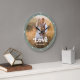 This colorful and stylish clock features your favorite personal family photo, with trendy white typography and a spot to add your name. The border of the clock is a sage green color.