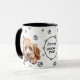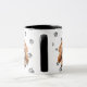 This mug for the Cockapoo owner features an artist's watercolor portrait of an adorable buff colored Cockapoo. The image is printed twice, and between them is an oval with the black text that says "Love my COCKAPOO". The oval and dog images are placed on a background sprinkled with paw prints. You may easily change the text to something else, or personalize it, if you'd like.