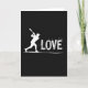 This card opens on a deep black background where a crisp white silhouette of a baseball player is caught mid-swing, the bat arcing up with dramatic energy. The player’s body cleverly forms the tall “L” in the word “LOVE,” turning the action into a quiet nod to devotion ❤️. To the right, “OVE” sits in large white letters with a rough, chalk-like texture that feels like it was drawn in the heat of the moment. Tiny white flecks and streaks scatter outward from the letters, like dust and impact marks hanging in the air, adding a rush that reads as both sport and romance 🥰. The text runs horizontally across the center area, with the figure integrated into the first letter so your eye moves naturally from the swing into the word. A long, smooth white line sweeps along the bottom edge, grounding the scene like a baseline under the action. The overall look stays minimal, with only black space, bright white shapes, and those scattered specks framing the player and the word “LOVE.”