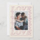 Cette carte branchée de la Saint-Valentin présente un design typographique audacieux et minimaliste, utilisant le mot "Amour". Un cadre photo avec une bordure blanche est placé au-dessus du lettrage, permettant juste assez de visibilité et de lisibilité du mot. Il y a de la place pour un accueil personnalisé sous le design typographique. Le côté arrière de la carte comporte un motif cardiaque de coordination.