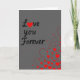 This greeting card features the words “Love you Forever” in black flowing cursive-style lettering across a soft grey background. The “o” in “Love” is replaced by a bright red heart, which draws your eye right away ❤️. In the lower right area, a stream of small hearts rises upward, mixing solid red hearts with red outline hearts that use short dashed lines. The hearts vary in size, so it feels like they’re drifting and spreading across the card. With only grey, black, and red, the message feels focused and easy to read. It’s a simple way to say you care deeply, whether it’s for a partner or someone you’ve loved for a long time 🥰. The design feels steady and reassuring, like a promise you want the other person to keep. Hope it helps you share Valentine’s Day sentiments in a kind, heartfelt way.