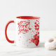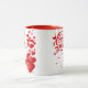 White-red mug with lots of red hearts and love you sign, for coffee or milk or hot chocolate