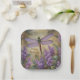 These beautiful birthday paper plates feature a gorgeous garden scene featuring a dragonfly and lilac flowers.