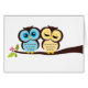 Süße, gelbe und blaue Eulen, die auf einer Zweig-Illustration stehen.