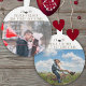 Amour Couple 1er Noël Jour férié Keepsaké 2 Photos Ornament. Design moderne de vacances avec photo, vos noms, année et texte de chaque côté - ajoutez vos photos de chaque côté. Un saké photo doux pour un couple aimant pour le 1er Noël.