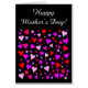 Die Grußkarte des Muttertags bietet ein lustiges, liebevolles Muster aus Herzen verschiedener Größen und farbenfrohen Farben wie Rosa, lila, Magenta und Rot. Die Meldung auf der Innenseite ist personalisiert.