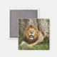 Ein quadratischer Magnet mit einem Bild eines hübschen Löwen im Maasai Mara National Reserve, einem großen Wildreservat im Narok Landkreis, Kenia, in der Nähe des Serengeti Nationalparks in Mara Region, Tansania. Siehe dazu passender Flex-Style-Magnet. Sehen Sie sich die gesamte Safari Magnet-Sammlung in den SPECIAL-TOUCHS an. | Abschnitt Gastgeschenke.