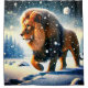 Dieser Duschvorhang hat einen Löwen im Schnee darauf.