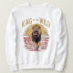 Ein majestätischer Löwe steht stolz mit den Worten König der Wilden überlagert, die die mächtige und dominante Natur dieser großen Katze in ihrem natürlichen Lebensraum repräsentieren.