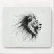 An der Wand hängt ein Löwenbild – stumm, doch kraftvoll. Sein Blick durchdringt die Stille des Raums wie ein Ruf. Digital Illustration- Schwarz-Weiß