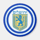 Runder Magnet mit einem Bild von einem blauen und gelben Löwe des Judah Emblems und breiten doppelblauen Ränder in hellblau auf weiß beschnitten. Sehen Sie sich die gesamte Hanukka Magnet Kollektion im Bereich HOLIDAYS an.