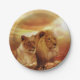 Diese Teller haben zwei Löwen, die sich entspannen und auf ihnen abgebildet sind.