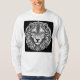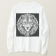 Hochdetaillierte und stilisierte Illustration eines Löwengesichts. Der Löwe ist in Schwarz und Weiß dargestellt und zeigt komplexe Linienarbeiten, die seine Mähne und Gesichtszüge hervorheben. Die Augen des Löwen durchdringen und sind voller Ausdruck, zeichnend Aufmerksamkeit. Um den Löwenkopf herum ist ein dekoratives kreisförmiges Design, das die Figur ergänzt und ein Element der Symmetrie und Tiefe hinzufügt. Der kontrastierende schwarze Hintergrund hebt die Detailkunst hervor und verleiht der Gesamtkomposition ein beeindruckendes und majestätisches Aussehen.