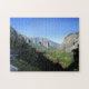 Blick über das Yosemite Valley von der unteren Vier-Kilometer-Strecke bis El Capitan und Kathedrale Felsen. Kalifornien, Sierra Nevada, Yosemite National Park, Yosemite Valley, Four Mile Trail. John Muir Trail Mile 000.