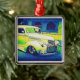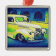 Digital, die von einer Fotografie in eine Kunstschönheit, das Auto dieses klassischen Kollektors umgewandelt wird, ist ein zu erblicken Anblick! Geparkt in einer historischen im Stadtzentrum gelegenen Einstellung, ist sie von der Gruppen- und Mafiapöbelart Fluchtwagen erinnernd! Vibrierendes Blaues, hellgrün und gelb, mit Beschaffenheit.