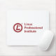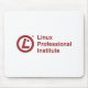 Mausunterlage mit dem LPI Logo-und Linux-beruflichen Instituttext im Rot auf einem weißen mousepad.