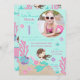 Kleine Jungfrau-Einladungskarte zum ersten Geburtstag mit Unterwasserkreaturen und einer Einfügemaschine für das Foto.