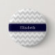 Lt Grey White Zickzack Navy Blue Name Monogram Button