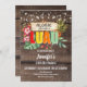 Rustikaler Holzfußboden mit Märchenleuchten und tropischen tropischen tropischen Blume.
