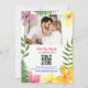 Das einladende Ambiente dieses einladenden Clubhotels im tropischen Stil lädt mit kühnen Hibiskus-Blume, Palmen-Blätter und einem spielerischen Flamingo zum Verweilen ein. Das zweiseitige Design beinhaltet einen QR-Code für UAWG, Hochzeitswebseiten und ein Foto des Ehepaares. Das macht es lustig, funktionell und schön persönlich. Ideal für Strand-, Garten- oder Zielfeiern.