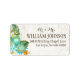 Des fleurs tropicales Luau sur la planche de bois blanc étiquettes de mariage rustique de plage.