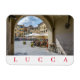 Ein wunderschöner Ausblick auf einen Teil der Piazza Anfiteatro in der italienischen Stadt Lucca in der Toskana, gedruckt auf einem Souvenir-Kühlschrankmagnet.
