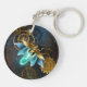 Luciole à vapeur avec ailes bleues transparentes et ampoule verte sur arrière - plan usé, marron, texturé. Style Steampunk.