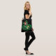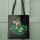 Rothaarige irische Fee zum St. Patrick's Day mit ihrem Topf aus Gold und grünen Kleeblatten