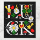 Mehrmals Weinetikett mit dem Wort LUCK und Glückssymbole wie Sternschnuppen, Würfel, Ladybugs, glückliche Nelken, Pilze, Gänse und Herzen.