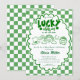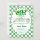 A little lucky charm is on the way. Celebrate with this playful Lucky Charm baby shower invitation featuring shamrocks, a rainbow, pot of gold, and a bold green checkerboard backdrop. The modern typography and clean layout make your party details pop while keeping the design fun, festive, and easy to read.
