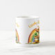 Beginnen Sie Ihren Tag mit etwas Glück mit dieser fröhlichen Tasse mit einem Entlein, das ein vierblättriges Kleeblatt auf einem Goldtopf unter einem Regenbogen hält. Ideal für den St. Patrick’s Day oder als lustiges, glückliches Geschenk.