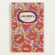 The cover showcases a bold repeating motif of protective eyes, blooming florals, and symbolic elements inspired by themes of luck, prosperity, and creative energy. At the center, a decorative badge highlights personalized text, making this journal a meaningful keepsake or thoughtful gift.