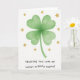 This design shows a large four-leaf clover painted in soft green washes, with heart-shaped leaves that lean toward each other like close friends sharing a quiet moment 💚. Fine vein lines radiate from the center, giving the leaves a gentle, lived-in look. The clover sits centered on a bright white background, making the green stand out without feeling loud. All around it, tiny gold stars are scattered like sprinkled confetti, catching the eye with a glittery look ☘️. The stars float loosely above and to the sides, as if drifting in a light breeze around the clover. Near the bottom, the message “SENDING YOU LOTS OF LUCKY WISHES TODAY!” appears in a friendly black hand-drawn style, stretching across the width and anchoring the page. The overall layout keeps plenty of open space, with the green clover in the middle and the gold stars dotted around it on the white field.