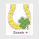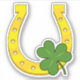 Lucky Golden Horseshoe mit Kleeblatt auf Schwarz Aufkleber