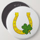 Lucky Golden Horseshoe mit Kleeblatt auf Weiß Button