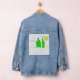 Lucky Green Cactus Doodle Funky Denim Jacket / Top to add to your collection. A great present / gift idea for those who love custom design unique, one of a kind items, positive vibes, motivational and inspirational things, personalized items, nature, green theme, savanna / savannah landscape, plants, cartoons etc. Yellow, white, green. Keywords: sun, cloud, cactus, drawing.