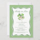 Lucky in Love Bridal Shower Shamrock Invitation - a whimsical invitation featuring a green shamrock adorned with a trendy pink coquette bow.