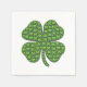 Dieses große vierblättrige Kleeblatt oder Kleeblatt, das auf weißem Hintergrund sitzt, wird von vielen kleinen Nelken geschmückt.