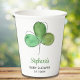 Planen Sie eine St Patrick's Day Babydusche? Dieses stilvolle Baby-Duschpapier-Becher ist perfekt für Ihre irische Feier. Es ist mit einem grünen Aquarell-Kleeblatt und Schriftzeichen dekoriert. Ideal für einen Paddy's Day oder eine März Babydusche. Original Wasserfarbe © Michele Davies.