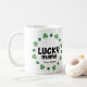 "Make her morning coffee even luckier with this beautiful 'Lucky Mama' personalized mug! This design features a vibrant wreath of green shamrocks surrounding bold, modern typography. What makes this mug truly special is the ability to add a custom name or a short sweet message at the bottom, making it a one-of-a-kind gift. Whether you're celebrating St. Patrick's Day, Mother's Day, or her birthday, this high-quality ceramic mug is the perfect way to show her she’s the luckiest mom in the world. Durable, stylish, and customized just for her