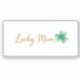 For the mom who feels extra lucky! This beautiful ""Lucky Mom"" sticker features elegant soft script typography accompanied by a unique shamrock formed with heart-shaped leaves.