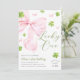 Celebrate the joyous arrival of a little girl with our sweet "Lucky One" birthday invitation. This charming card features soft, classy St. Particks day theme shamrocks and a beautifully illustrated pink bow.