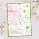 Celebrate the joyous arrival of a little girl with our sweet "Lucky One" birthday invitation. This charming card features soft, classy St. Particks day theme shamrocks and a beautifully illustrated pink bow.