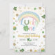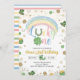 Celebrate a lucky first birthday with this charming rainbow invitation featuring shamrocks, horseshoes, and soft pastel tones. Perfect for a St. Patrick’s Day themed party or a Lucky One birthday celebration. This editable invitation is ideal for boys or girls and sets a joyful, festive tone for your event while matching coordinating party decor.