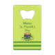 Porte d'or chanceuse, cet ouvre-bouteille du jour de la Saint Patrick présente un arrière - plan vert citron, "Joyeux Saint Patrick" en police verte avec un pot d'or et de bandes vertes au fond. Le dos continue l'arrière - plan vert citron avec les bandes vertes au fond. Ajoutez votre propre texte, photos et illustrations à la conception. Clipart et bandes créées par : AMBillustrations http://www.etsy.com/shop/AMBillustrations/